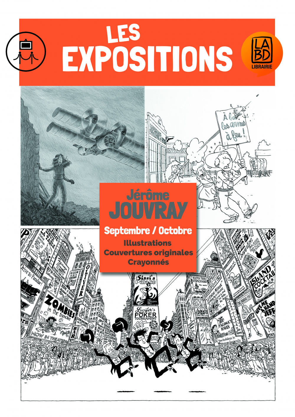 Nouvelle Exposition sur le mur de la librairie. Les dessins, croquis et couvertures originales de Jérôme Jouvray
